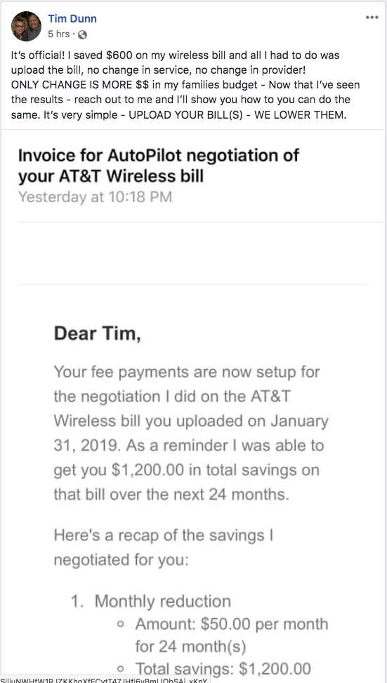 AutoPilot saved me a total of $1,068 on my internet and cell phone bills for 2 years!